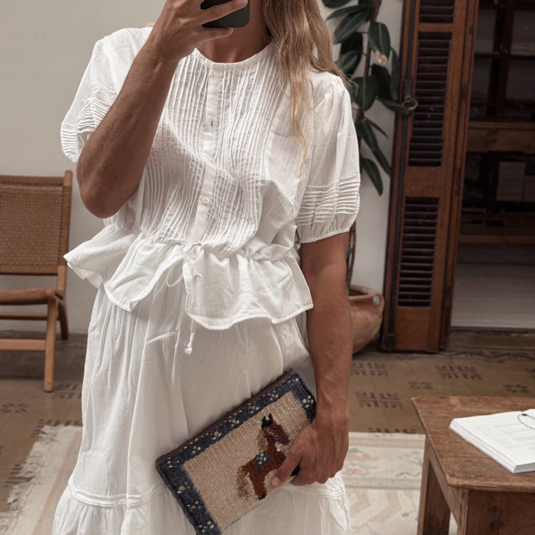 A skirt that I love and since the sample was made I haven't stopped wearing it, it is so comfortable, delicate, feminine and it looks so good with the light blue gaia or the amber blouse.